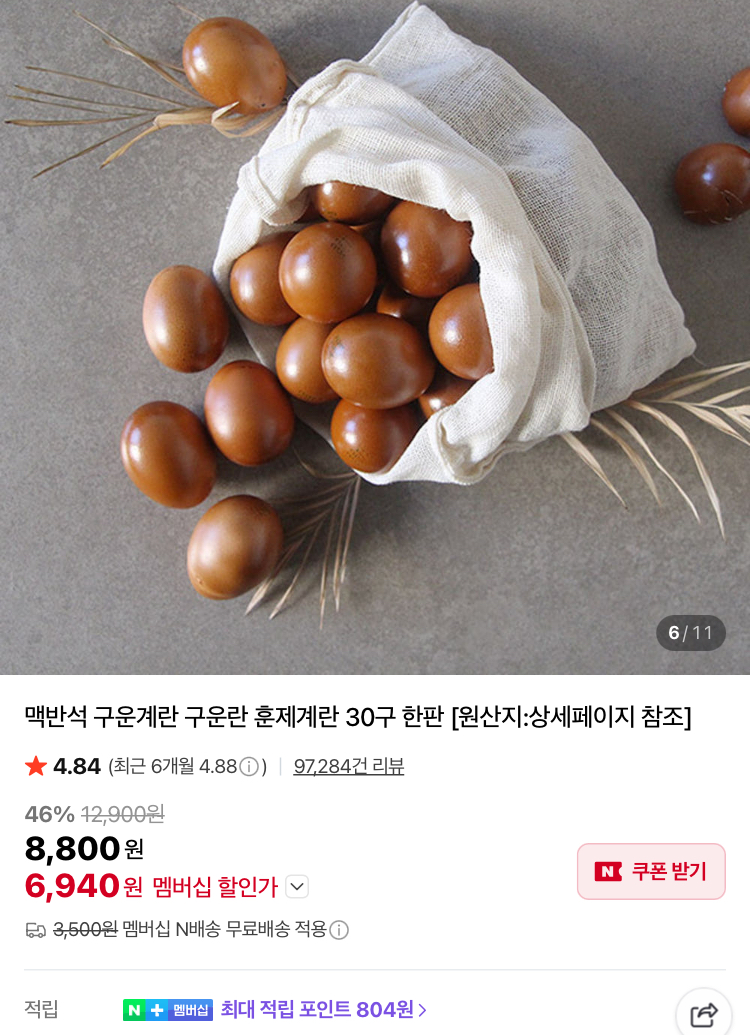 맥반석 구운란 30구 6940원, 블랙라벨오렌지 중소...