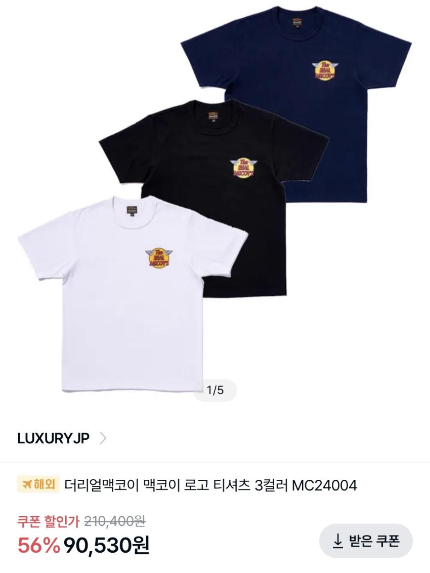리얼맥코이 로고 반팔티 9만원 / 무료배송