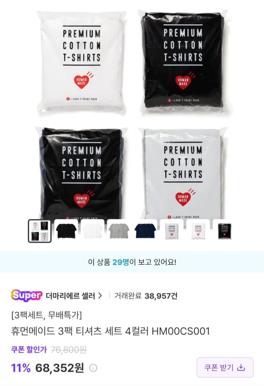 휴먼메이드 3팩 티셔츠 세트 4컬러 68,352원 - 딜모아