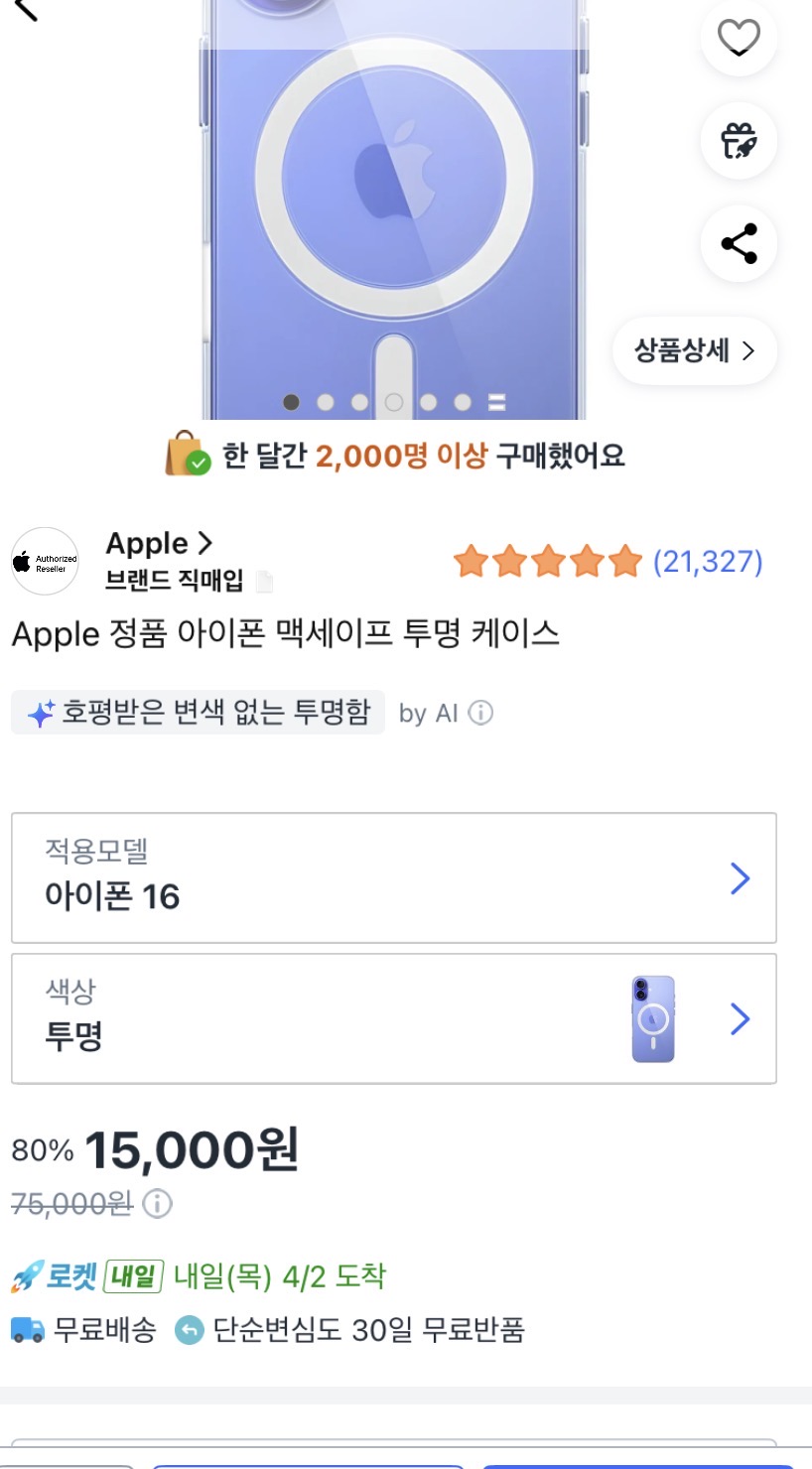 아이폰16 정품 투명 케이스 15000원 - 딜모아