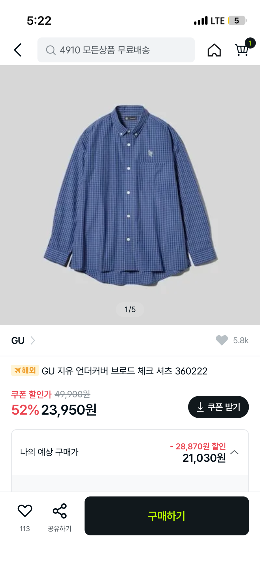 GU 지유 언더커버 브로드 체크 셔츠 23,950원