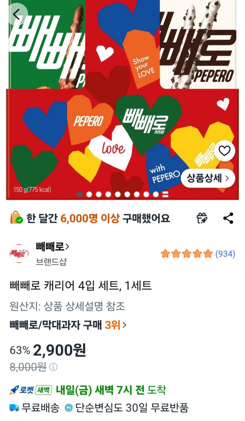 빼빼로 캐리어 4입 세트, 1세트 2,900원