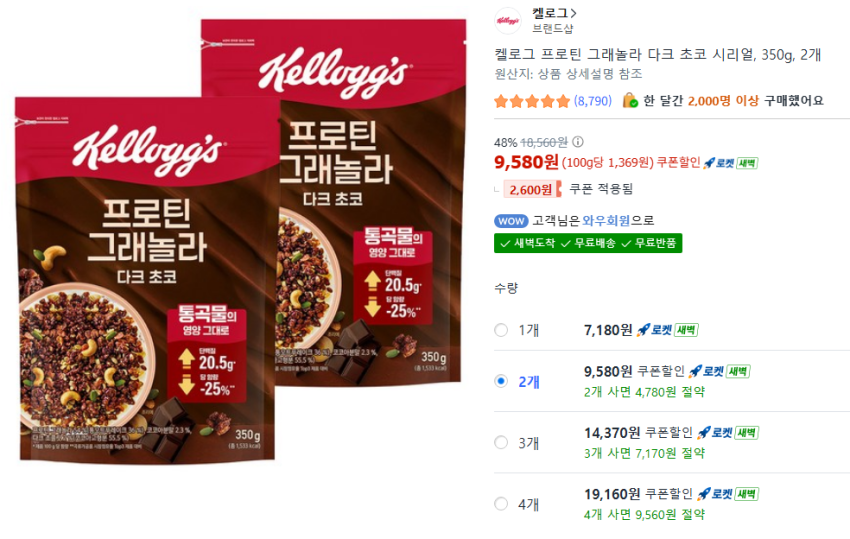 켈로그 프로틴 그래놀라 다크 초코 시리얼 4790원... - 딜모아