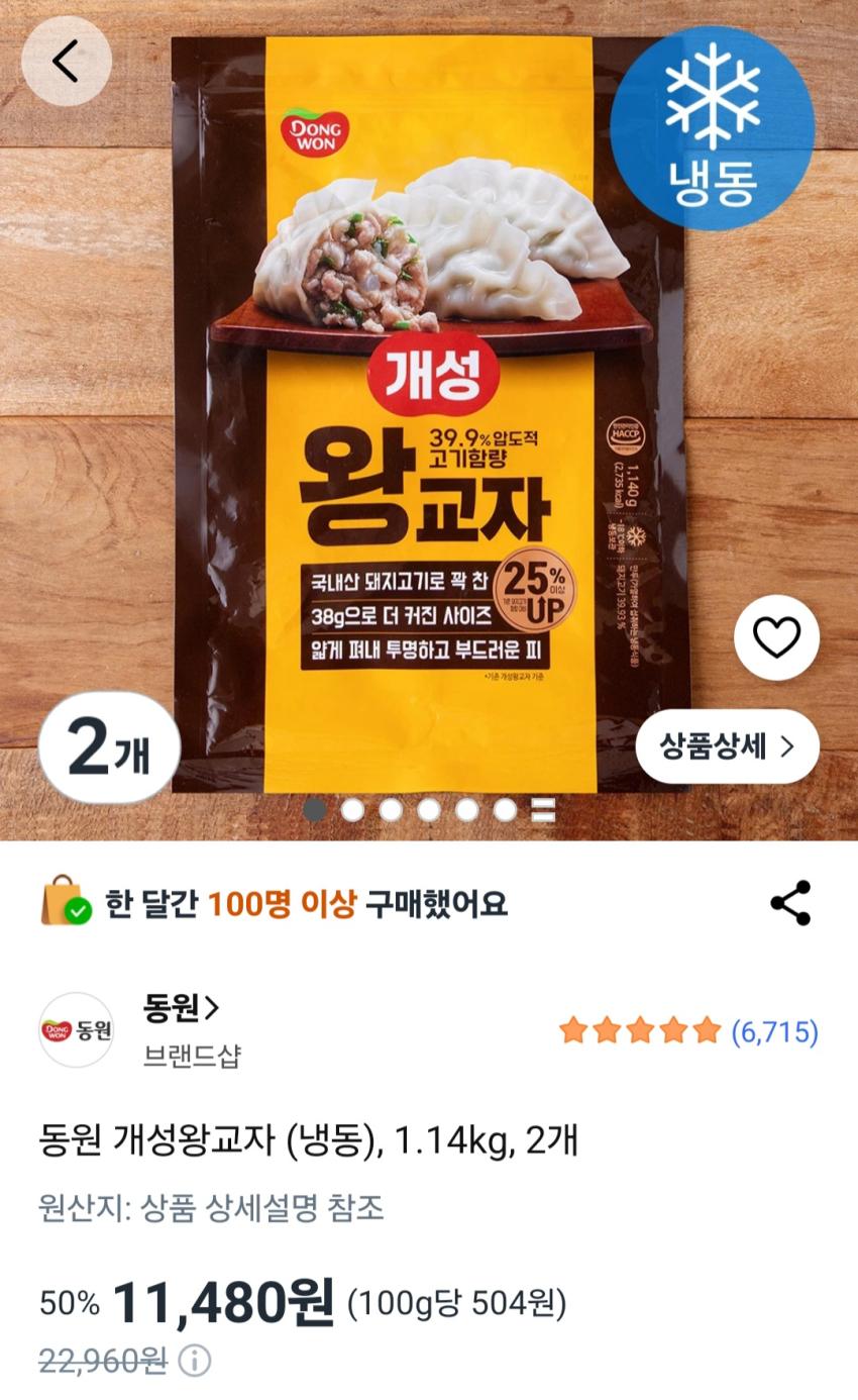 동원 개성왕교자 (냉동), 1.14kg, 2개 11,480원