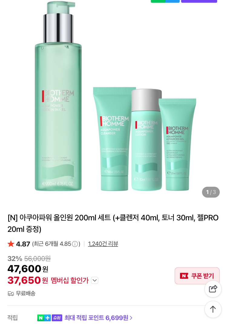[슈퍼적립] 비오템 아쿠아파워 올인원 200ml 세트...