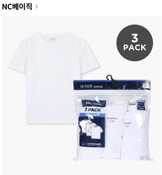 기본 반팔티 3팩 9900원