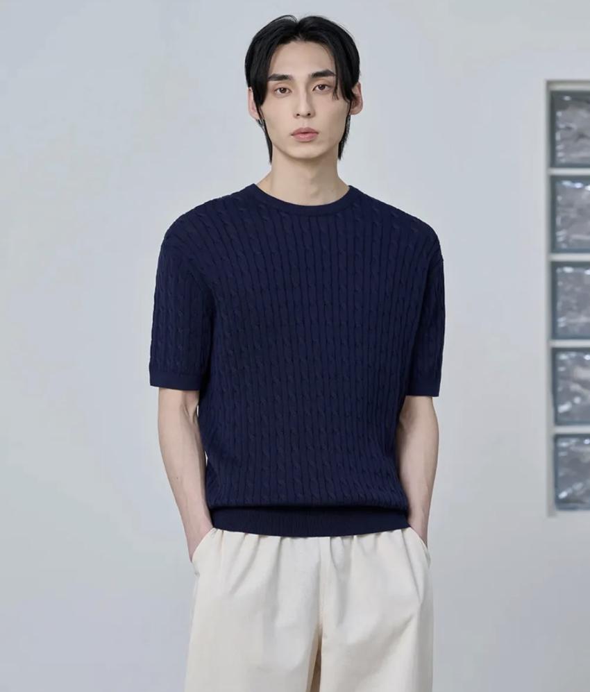 에이지오디 코튼 모달 워셔블 크루넥 케이블 하프...