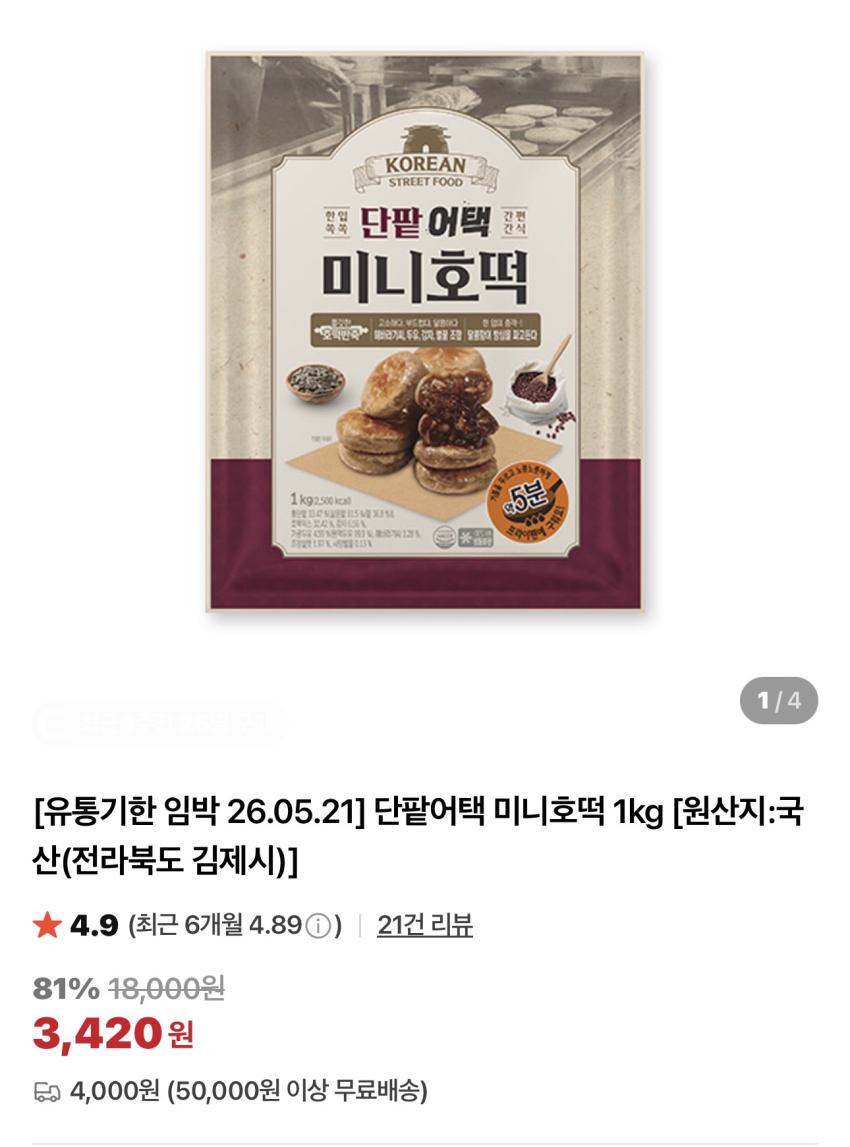 기한임박) 단팥어택 미니호떡 1kg / ₩3,420 - 딜모아