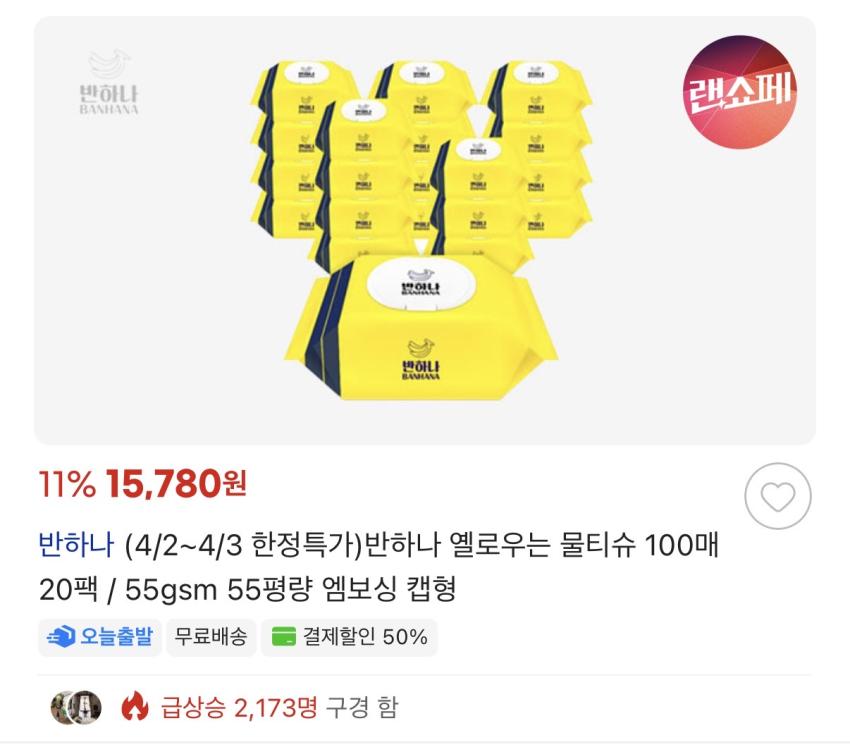 물티슈 100매 20팩 / 55gsm 55평량 엠보싱 캡형 ...