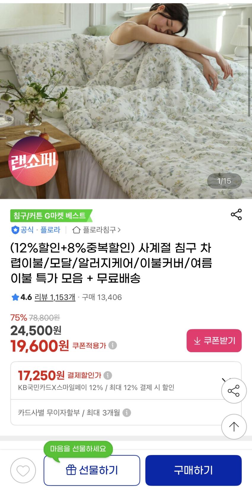 플로라 컬러랜드 차렵이불 19,600원~