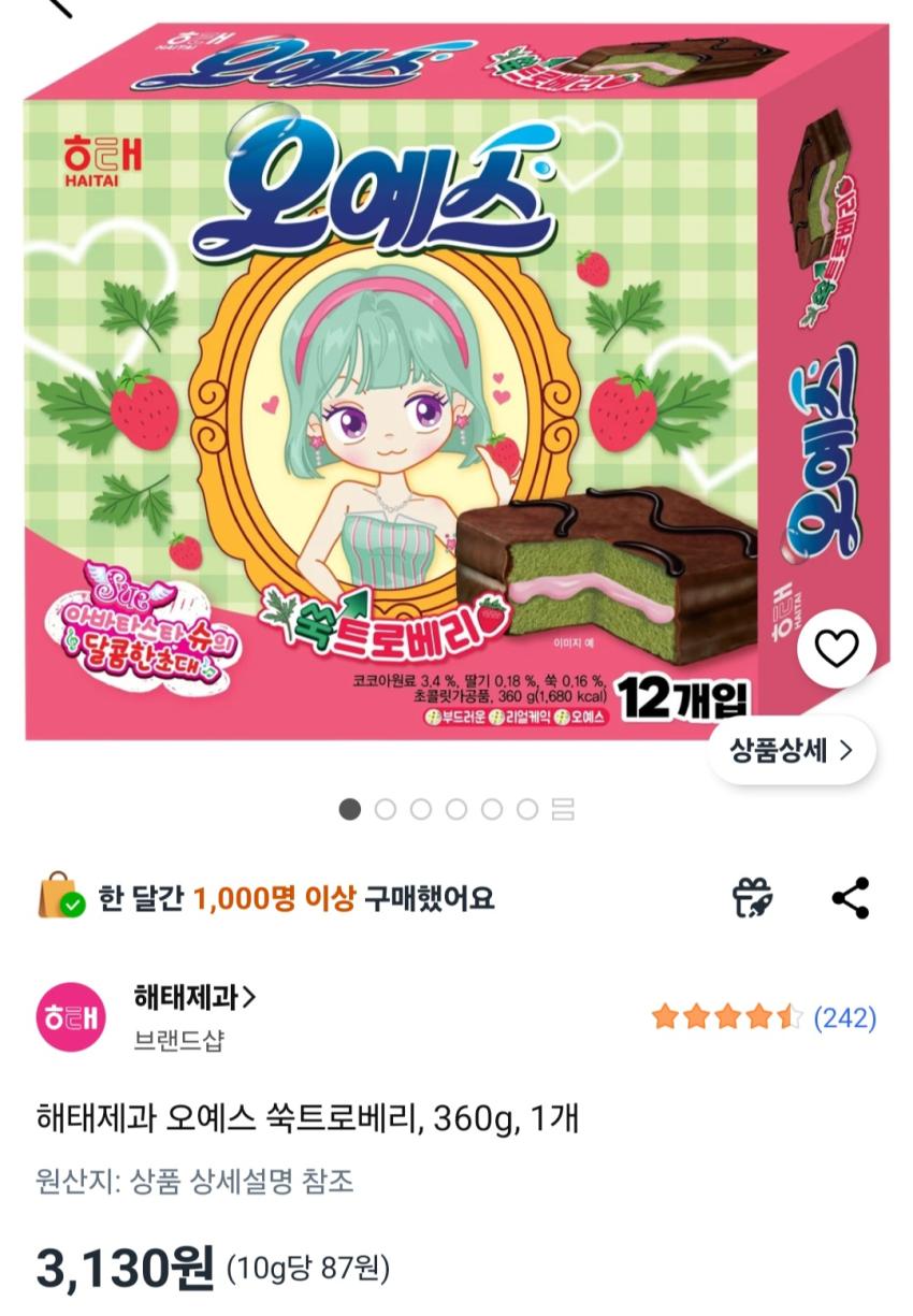 해태제과 오예스 쑥트로베리, 360g, 1개 3,130원