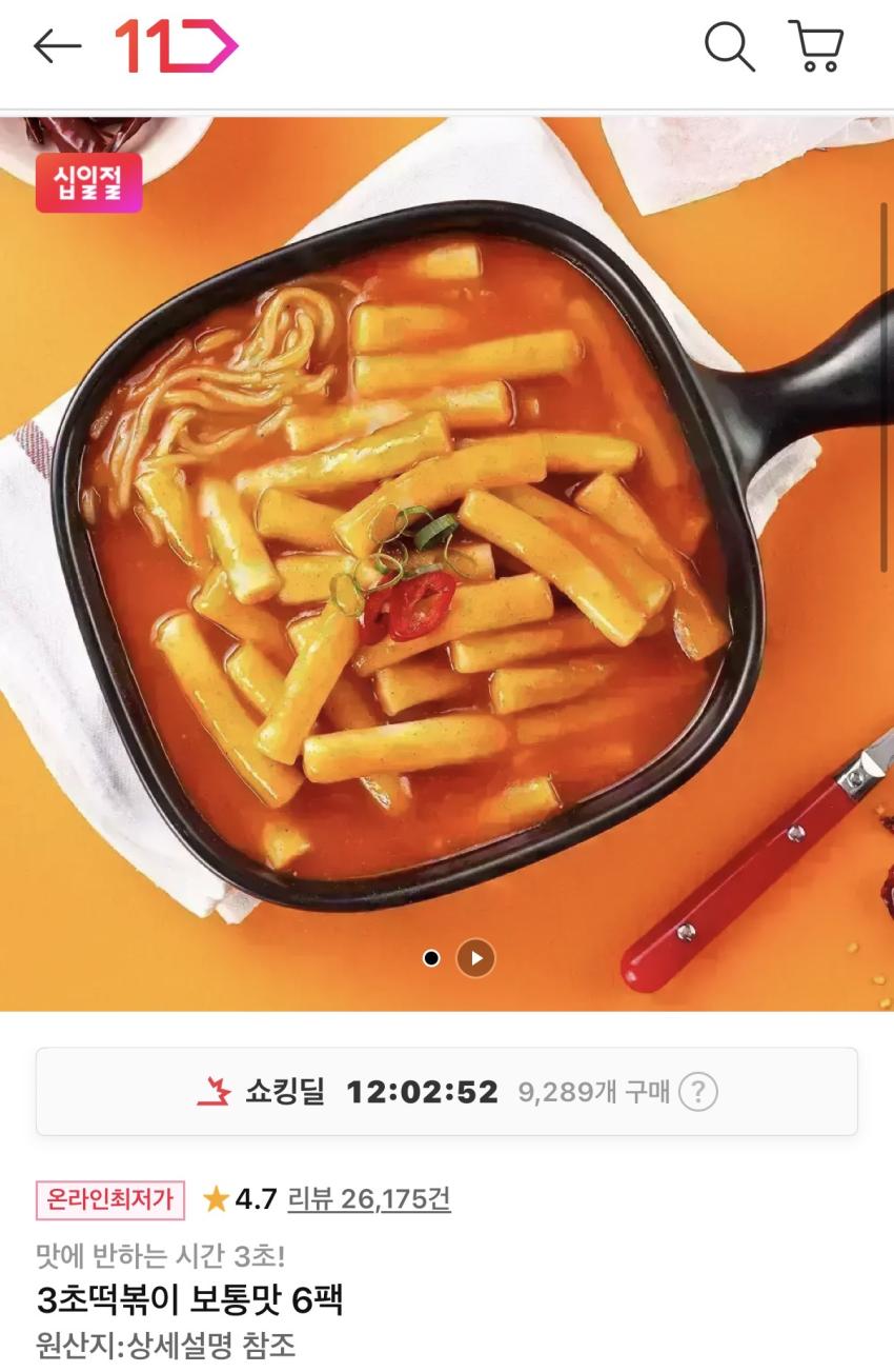 3초 떡볶이 보통맛 6팩 8,460원