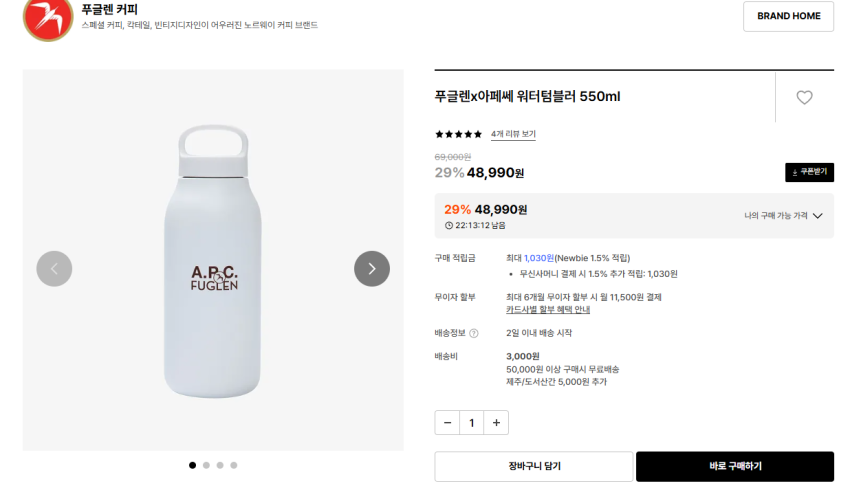 푸글렌x아페세 워터텀블러 550ml 48,990원