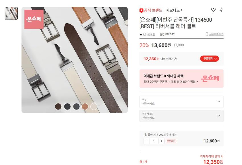 지오다노 래더 리버시블 벨트 12350원 무배