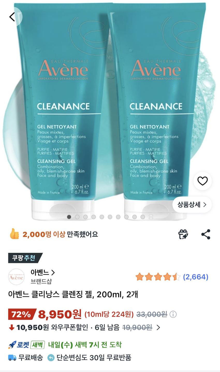 아벤느 클리낭스 클렌징 젤 200ml 2개 8,950원