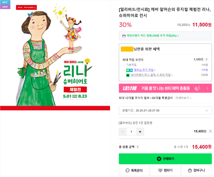 에바 알머슨 전시 얼리버드 / 15,400원