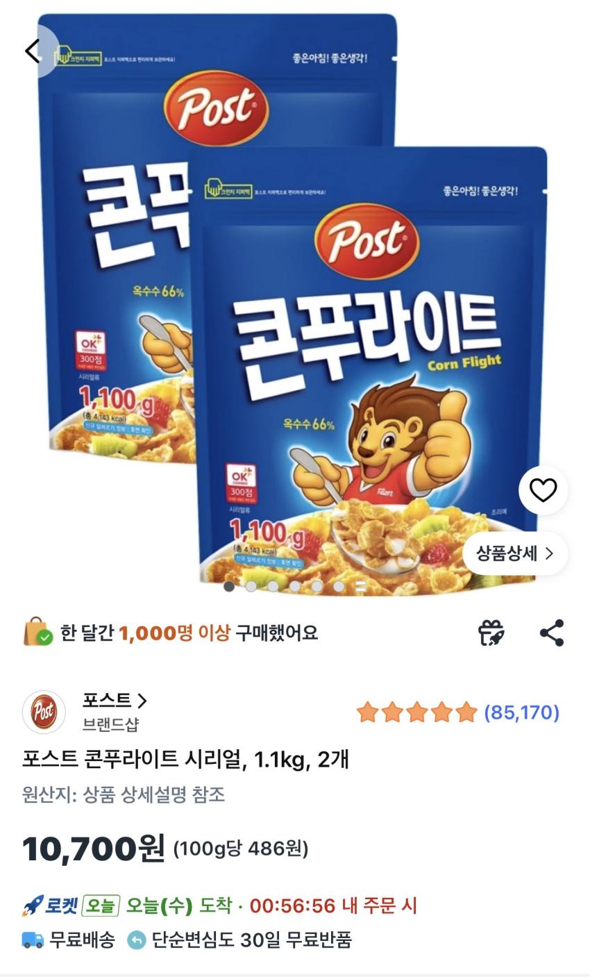 포스트 콘푸라이트 시리얼 1.1kg 2개 10,700원