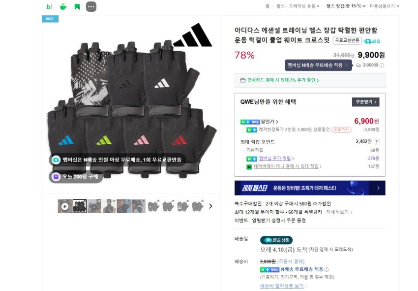 아디다스 에센셜 트레이닝 헬스 장갑 6900원 멤버...