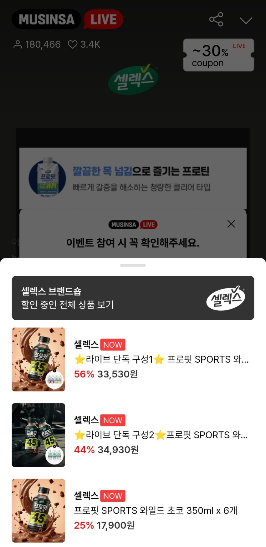 무신사 라이브 셀렉스 신상품외 30%쿠폰