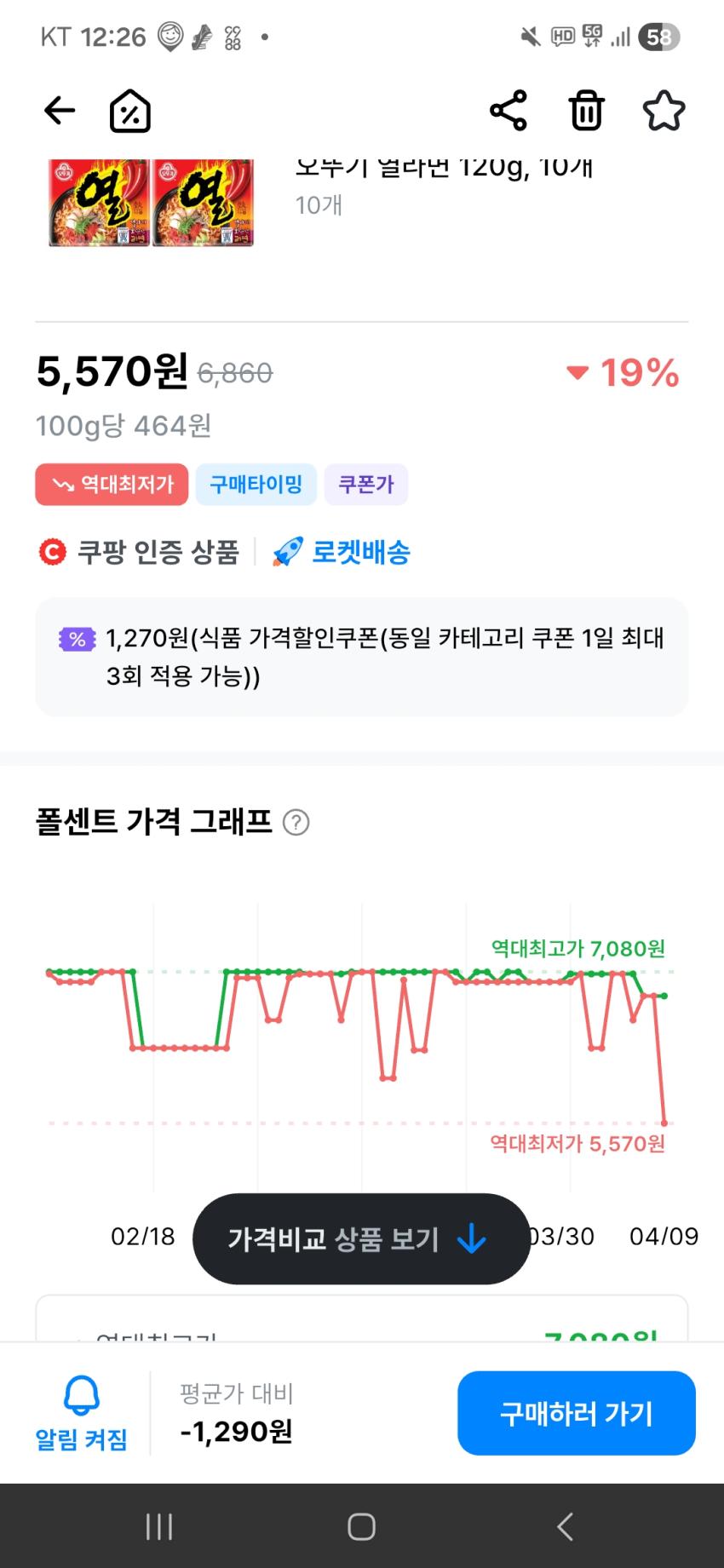 열라면 10개 5,570원