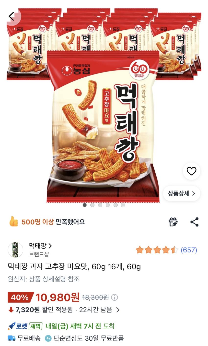 먹태깡 고추장마요맛 60g 16봉 10,980원