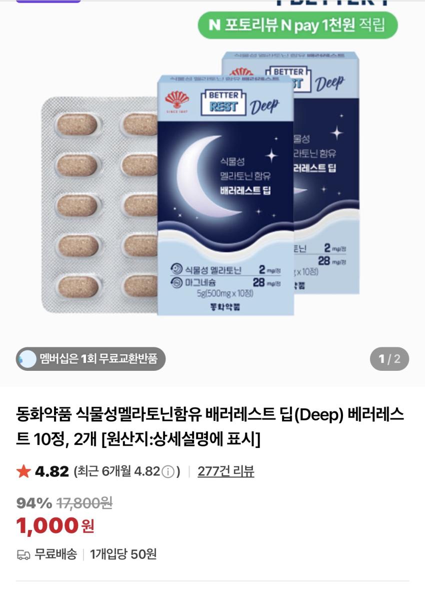 동화약품 베러레스트 10정 x 2개 / ₩1,000