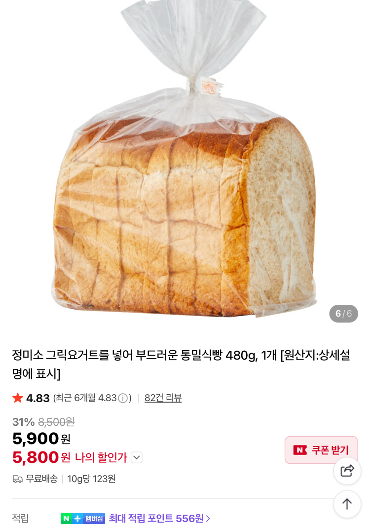 정미소 그릭요거트를 넣어 부드러운 통밀식빵 5800원