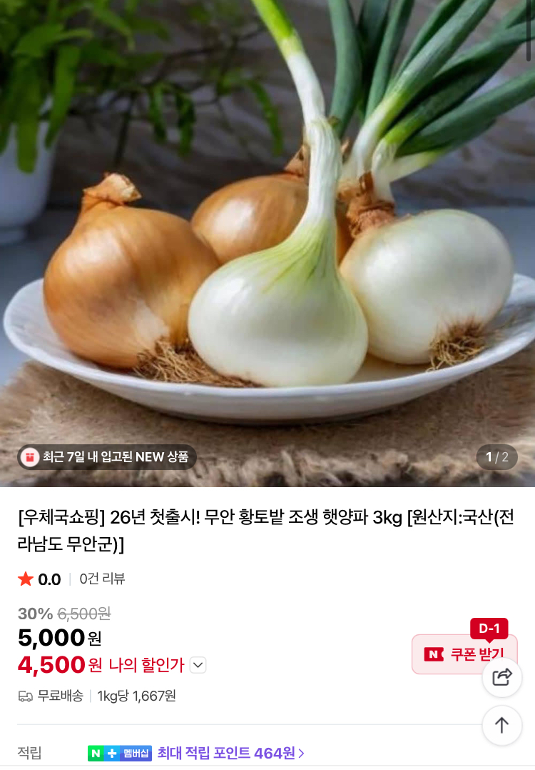우체국쇼핑 26년 첫출시! 무안 햇양파 3kg 4500원