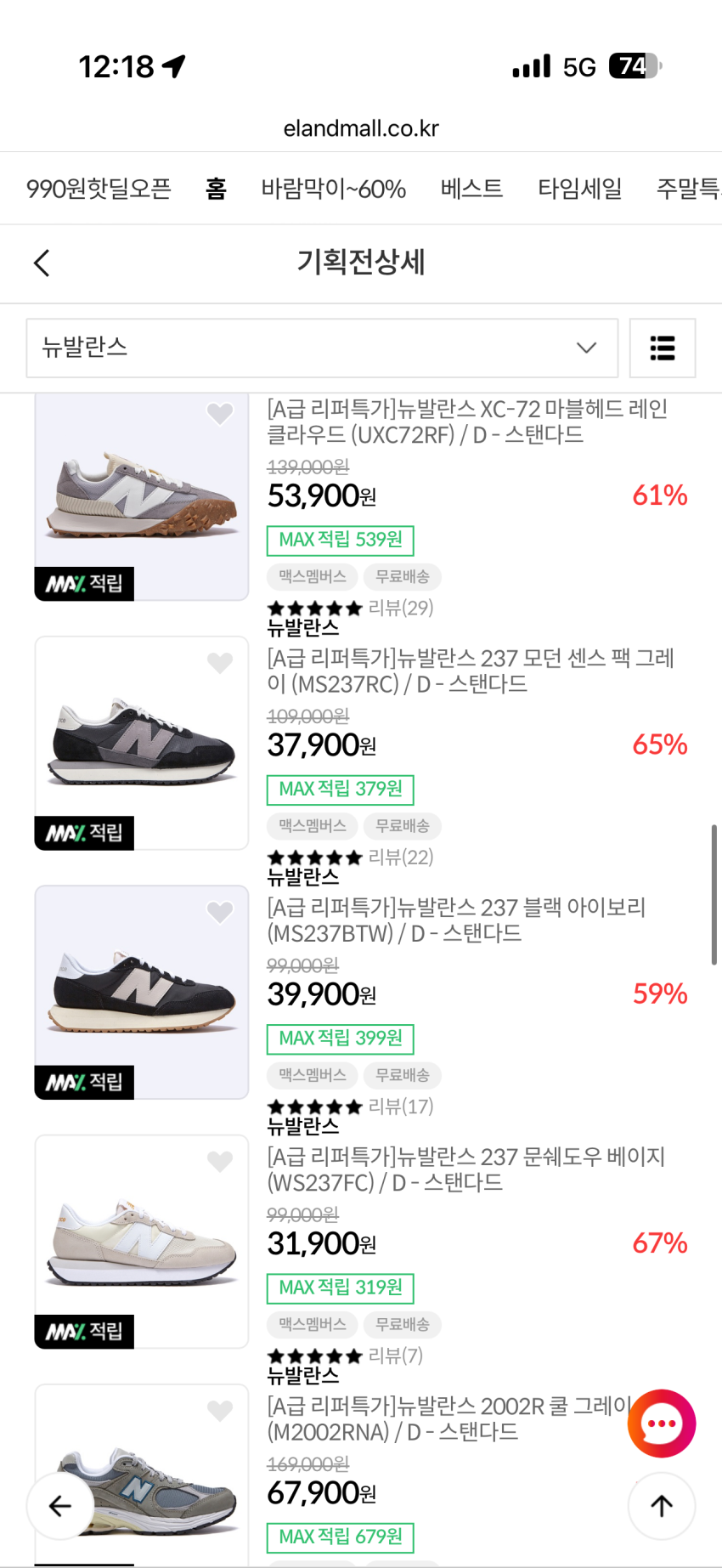 이랜드몰 뉴발란스 A급리퍼 3만원대~