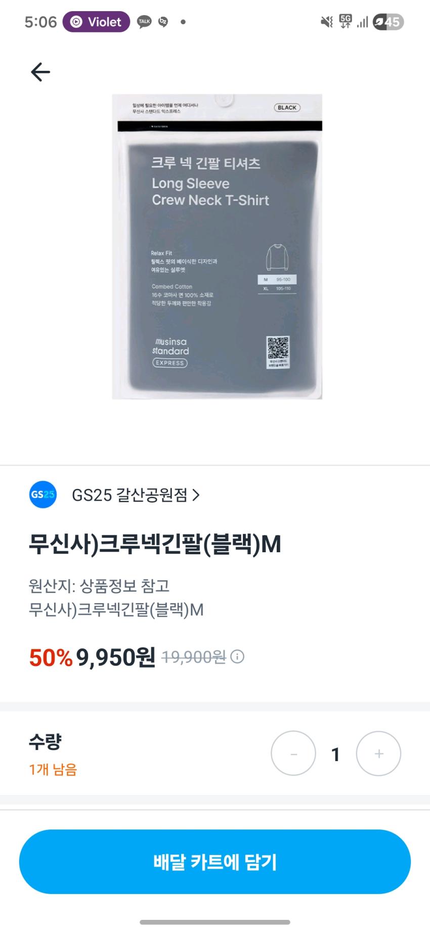 무탠다드 롱슬리브 크루넥 긴팔 (M , XL ) 9950 원