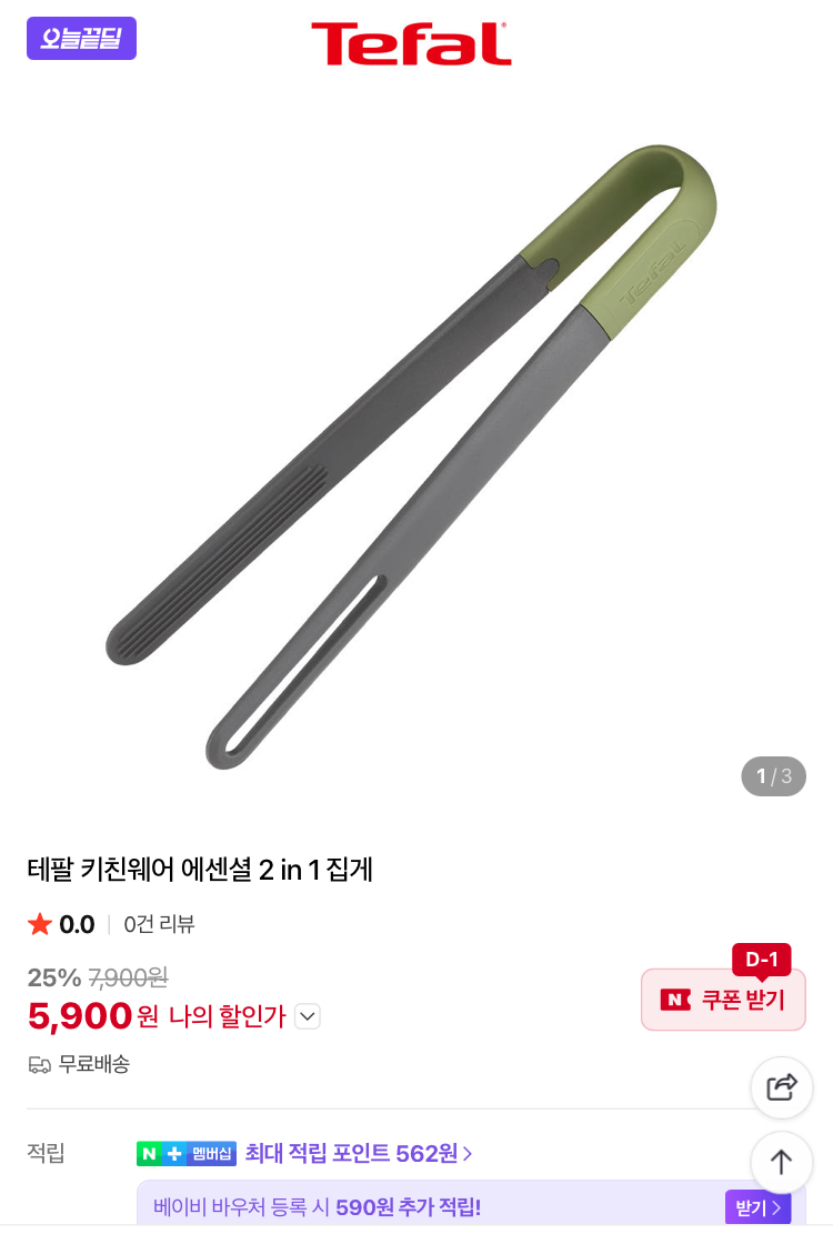 테팔 에센셜 2in1 집게 5900원 (무배)
