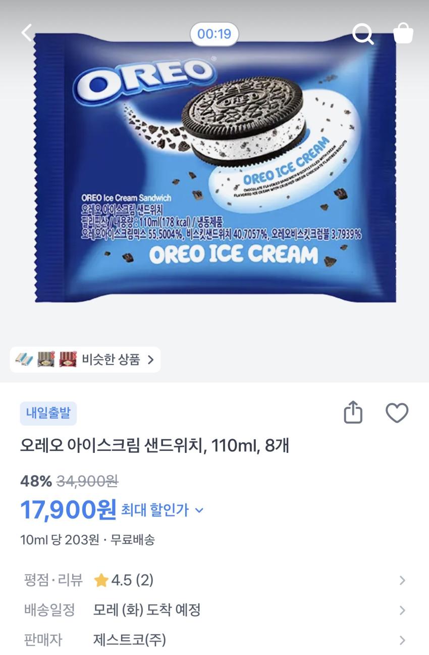 오레오 아이스크림 샌드위치 110ml 8개 17,900원