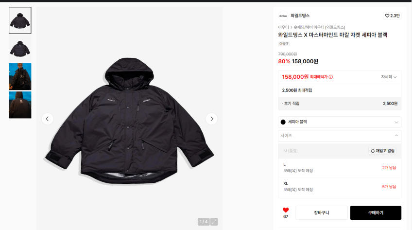 와일드띵스x마스터마인드 마칼 자켓 158000원