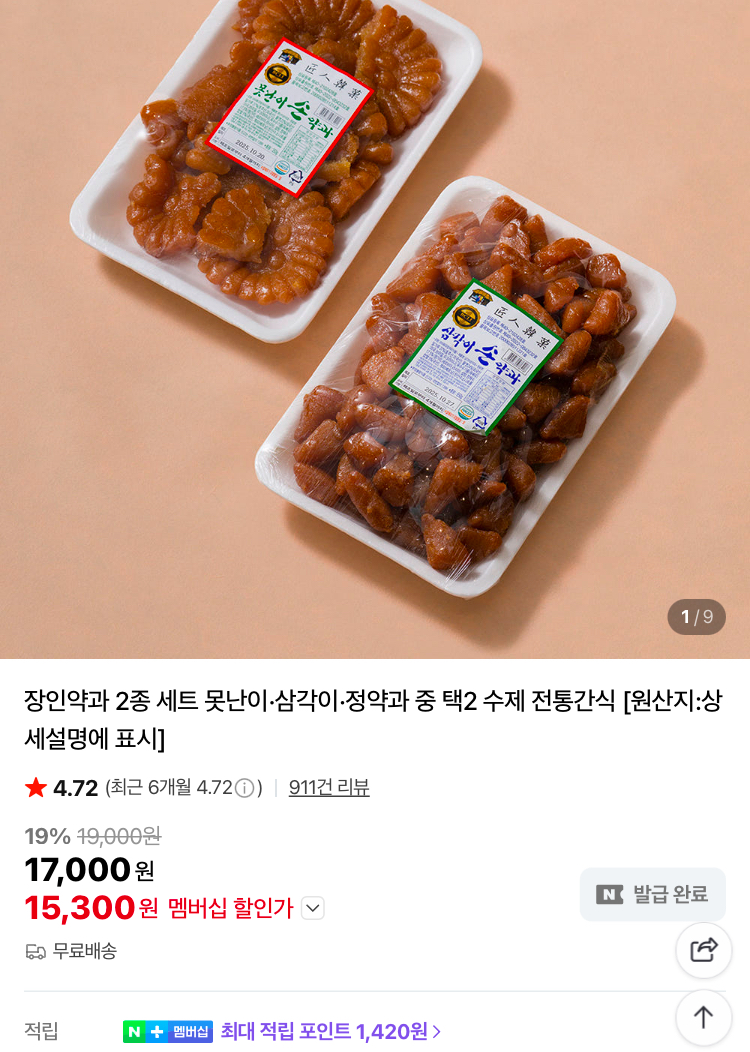 장인약과 못난이 2팩 15300원