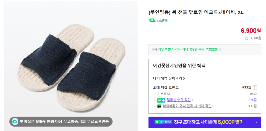 무인양품 룸 샌들 앞트임 6900원