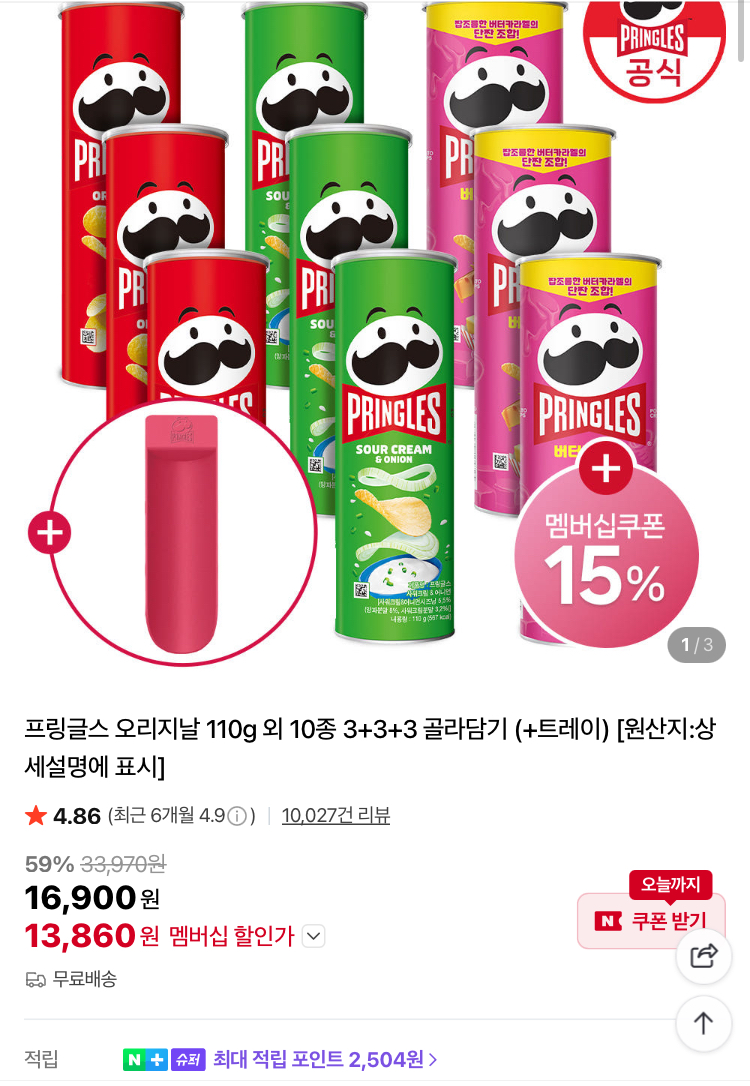 [슈퍼적립] 프링글스 9개 골라담기 13860원 (트레...