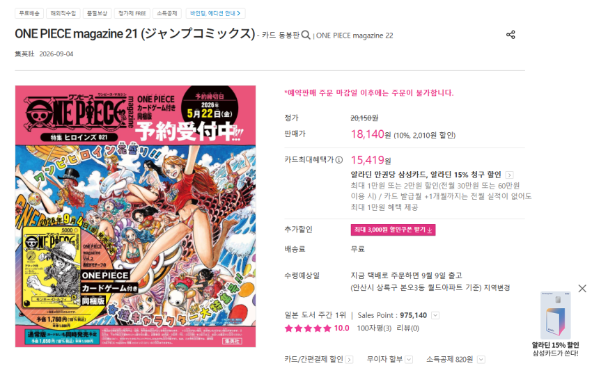 원피스 매거진 21호 / 프로모 카드 동봉판 18,140원