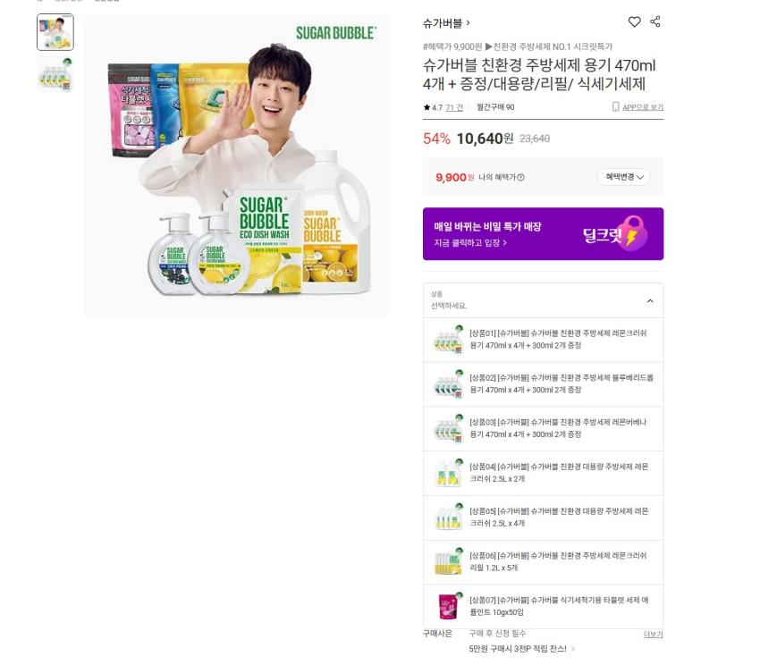 슈가버블 친환경 470ml 4개+ 300ml 2개 9900원 무배