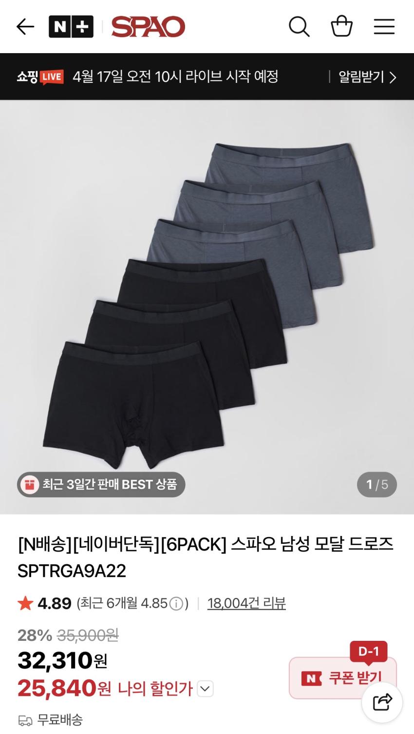 스파오 모달 드로즈 6팩 2.5만원 - 딜모아