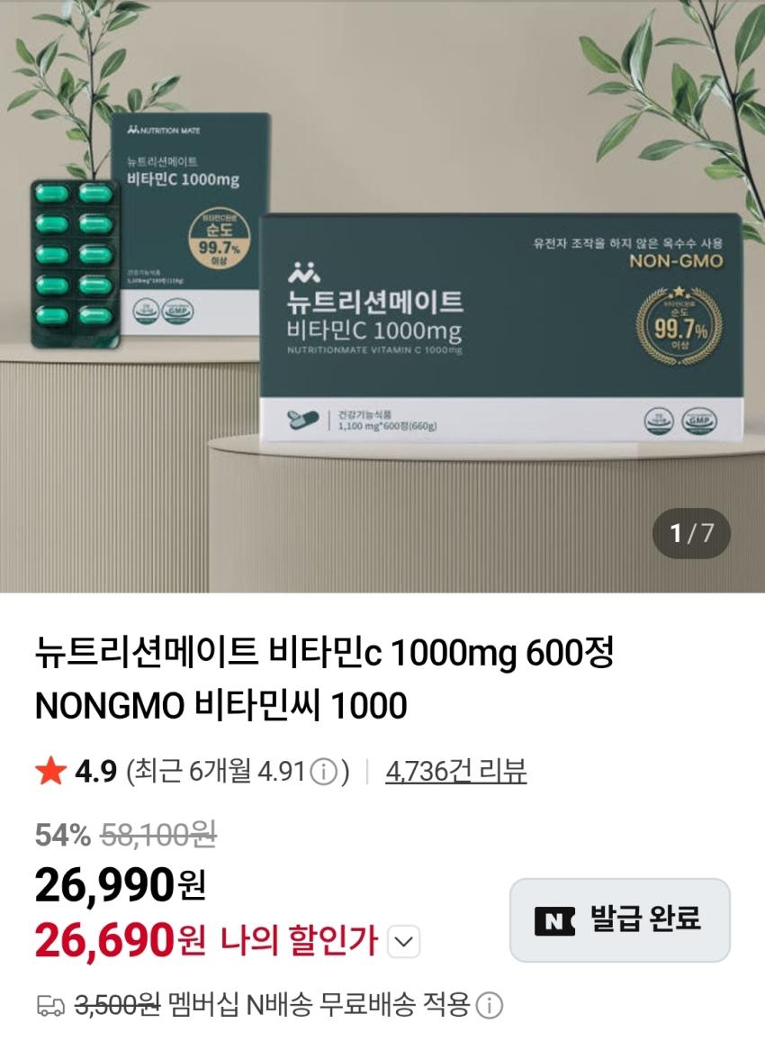 뉴트리션메이트 비타민C 1000 100정 4,340원