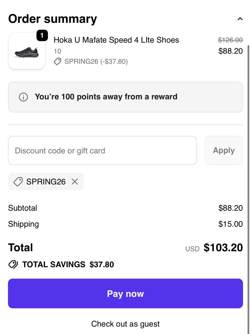 엑스트라버터 30%, 호카 스피드4 lite $88.2