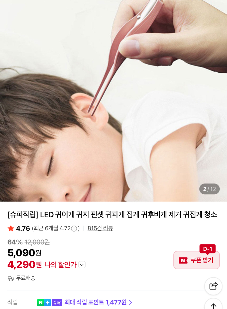 [슈퍼적립] LED 귀이개 귀지 핀셋 4290원