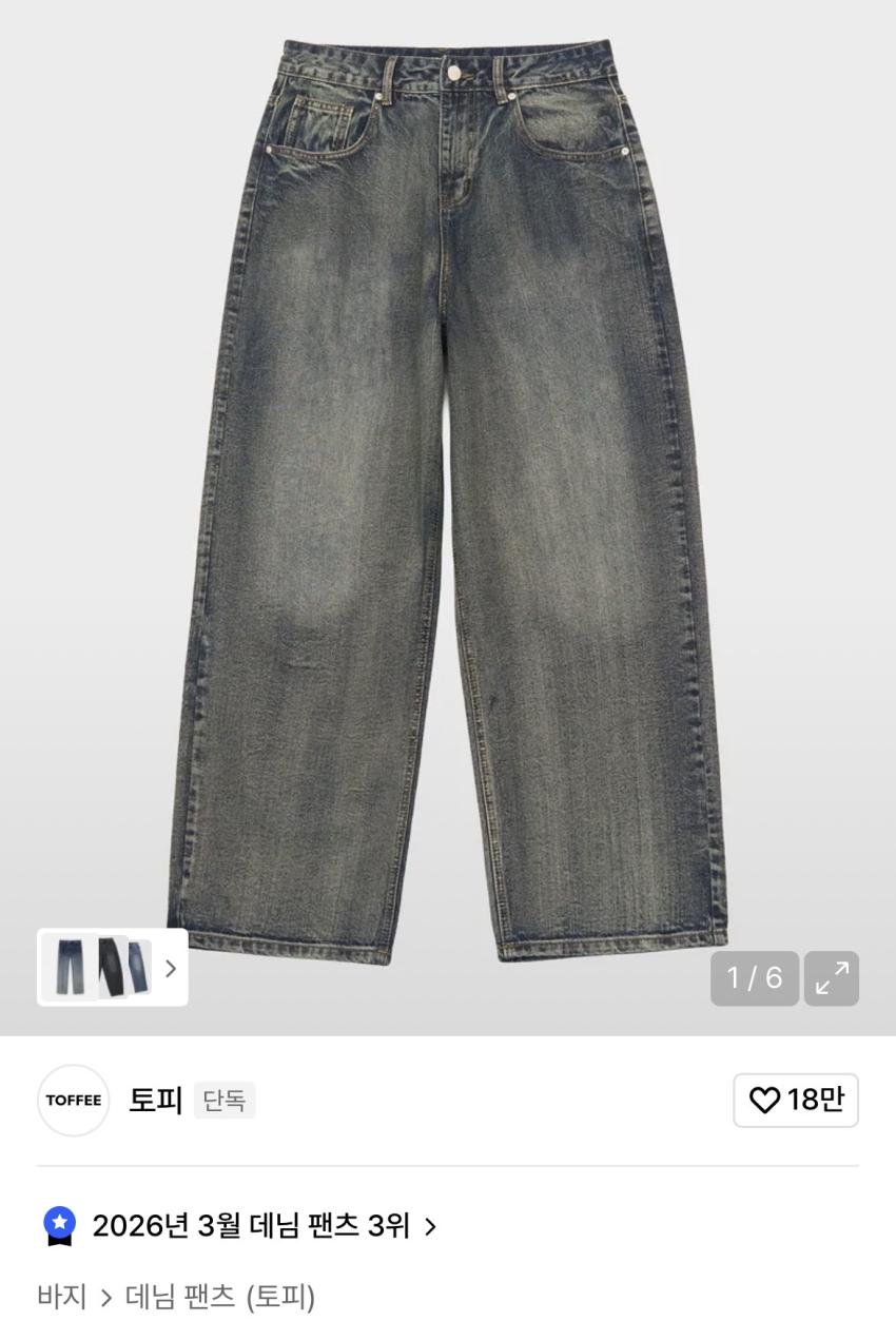 토피 워시드 와이드 데님 9,900원