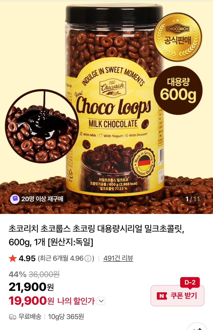 비요뜨 시리얼 초코링만 600g 19,900원 - 딜모아