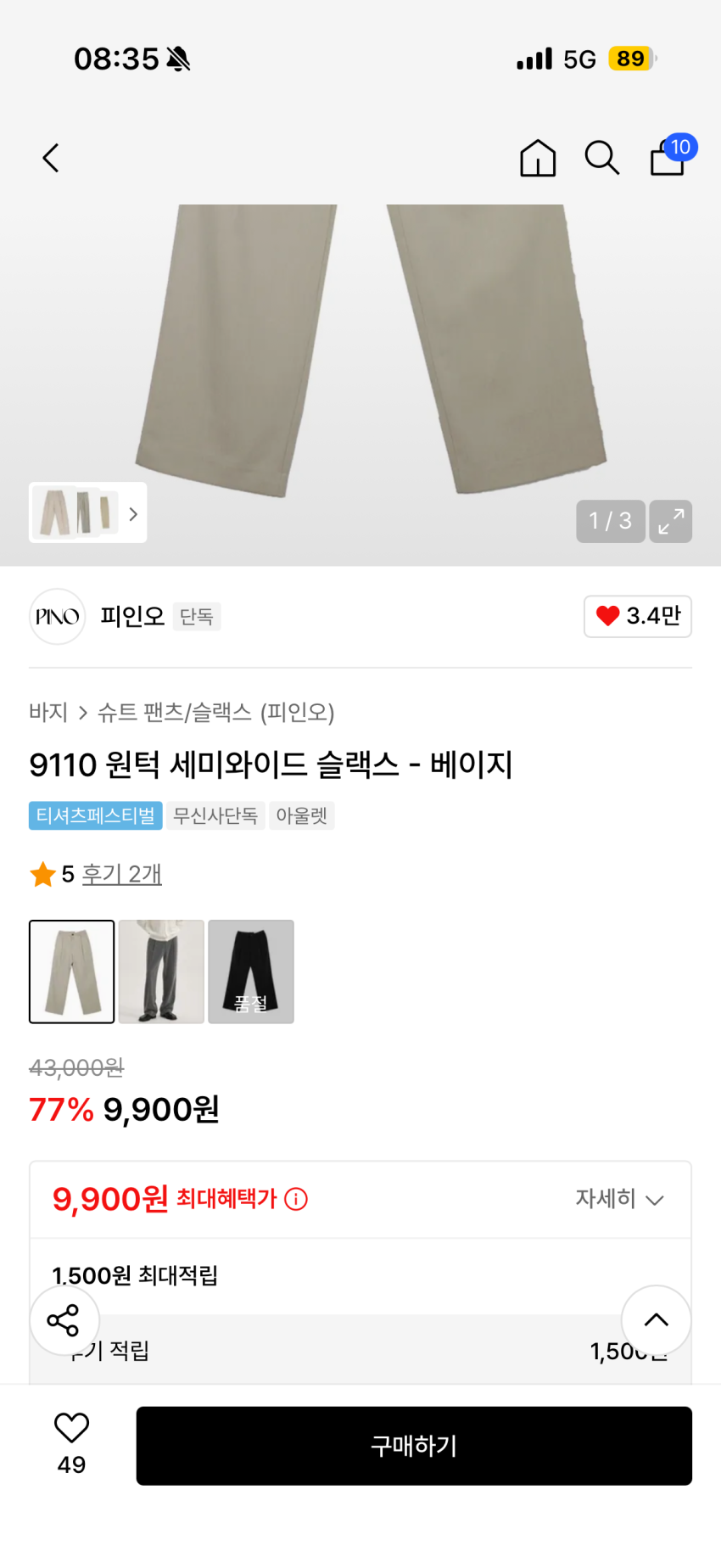 무신사 피인오 슬랙스 9,900원 - 딜모아