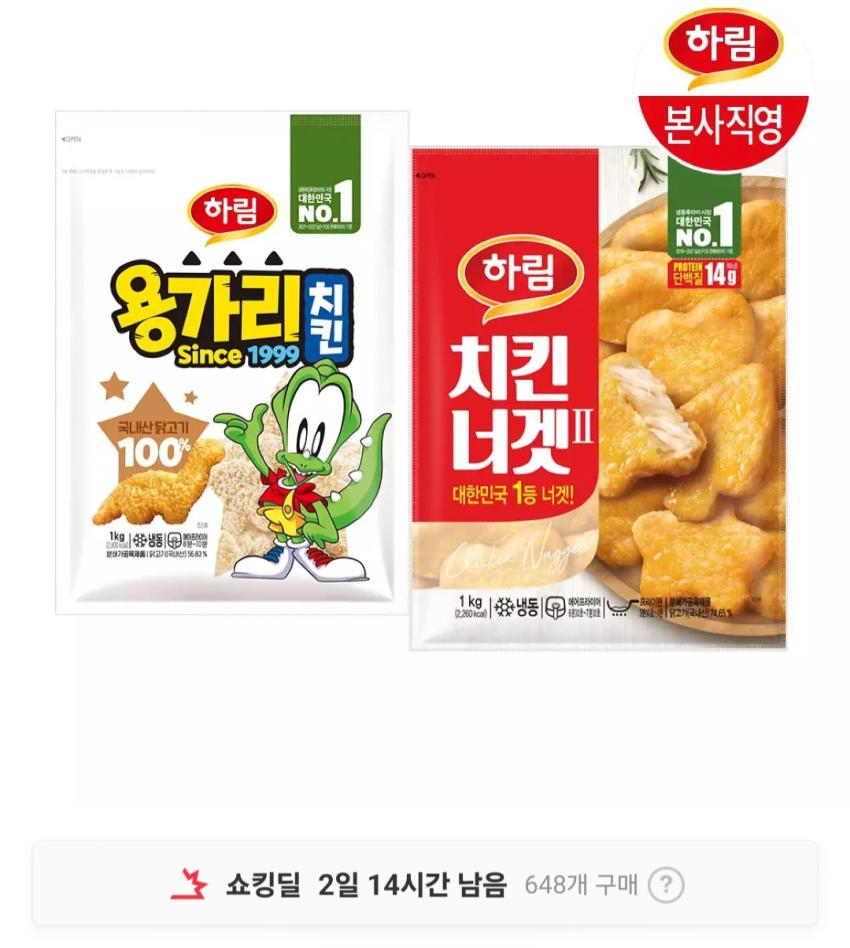 하림 치킨너겟2 1kg + 용가리치킨 1kg 20,810원 - 딜모아