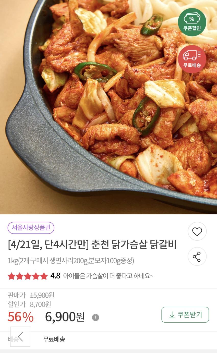 춘천 닭가슴살 닭갈비 6,900원 - 딜모아
