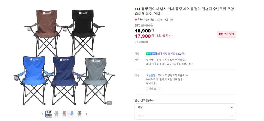조이캠프 캠핑의자, 낚시의자 1+1 17900원 무배