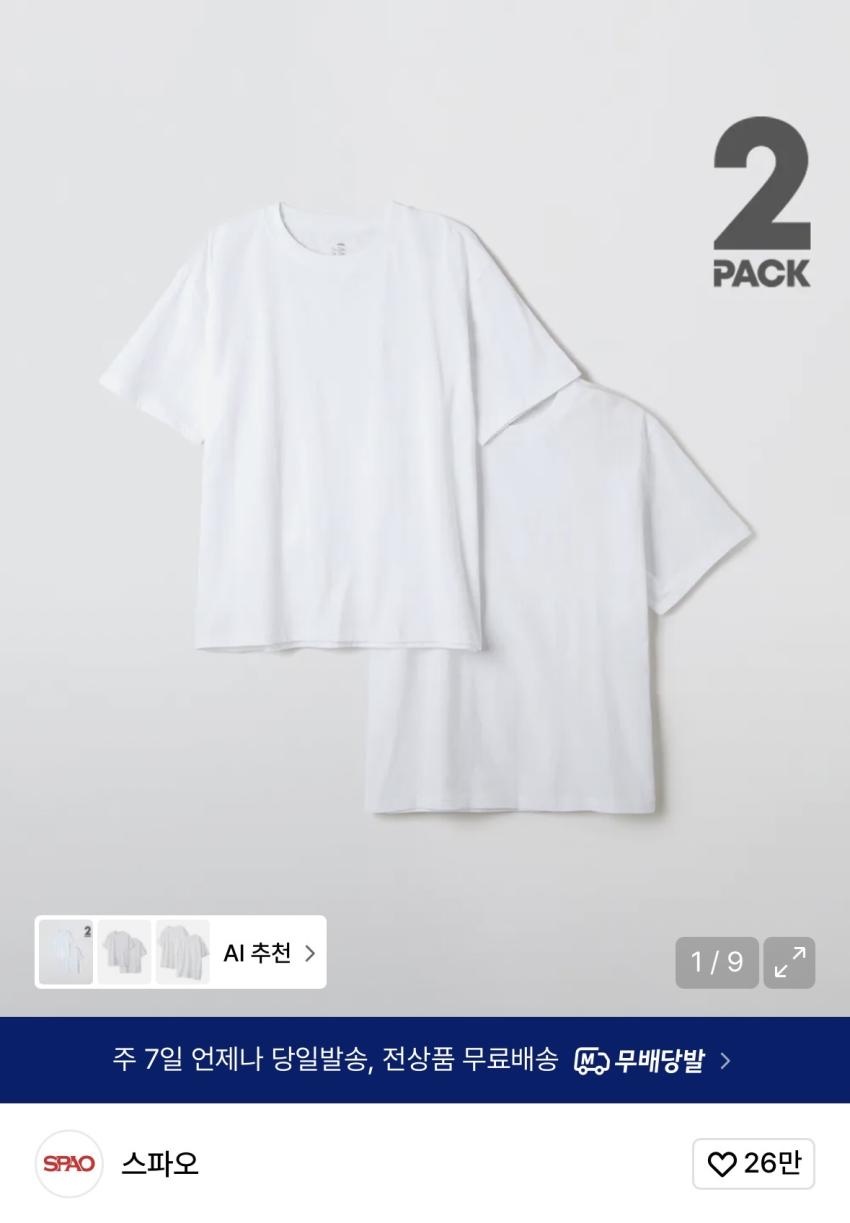 [2PACK] 스파오 코튼 레귤러핏 반팔티 9310원
