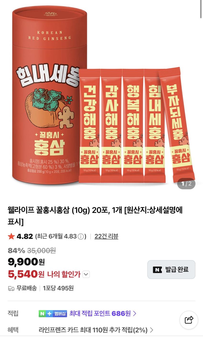 웰라이프 꿀홍시홍삼 (10g) 20포 5,540원